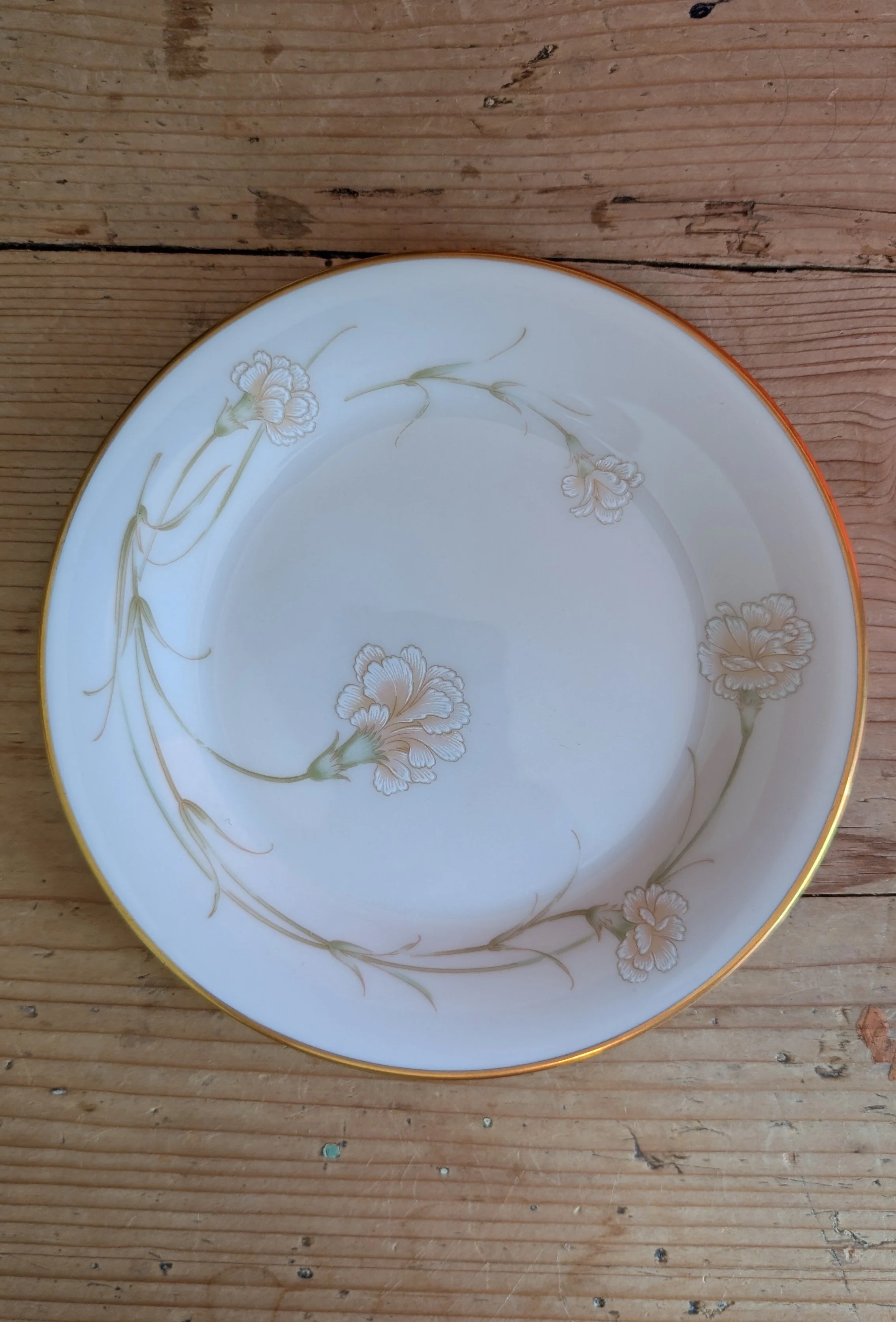 When I was starting junior high and my mom began earning a little extra money, she would visit a local store in Long Beach called Victor’s. There, she slowly started collecting pieces of a china pattern she fell in love with; a delicate, gold-rimmed affair with pink and white carnations. Over time, she grew the collection into service for eight. Very occasionally, she would bring them out for special celebrations.